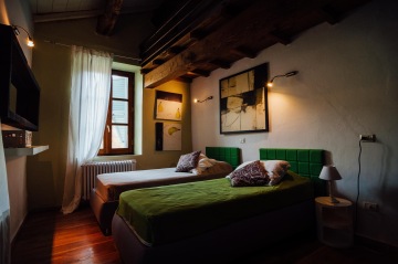 2 pokoje s oddělenými lůžky, mají sdílenou koupelnu na 1 patře.