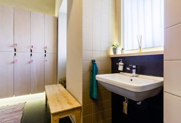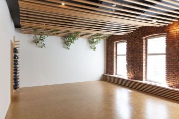 Studio má 96m2. Do cvičícího sálu se vejde 15-18 cvičenců. Sál je plně vybaven všemi cvičebními pomůckami (jógamatky, bolestery, bločky, deky, pásky atd.). Dále je zde prostorná recepce, chodba se sezením, dvě šatny se sprchami a dvě WC. Zázemí (rychlovarná konvice, sklad, prostor recepce) je k dispozici.