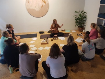 - Pohybová praxe: budeme se soustředit na jemný, propojený a ženský pohyb, který doplní a rozšíří jógové ásany a přechody mezi nimi. V první části se naladíme na naše tělo v pohybové meditace. V další části probudíme energii skrze pohyb, plynutí a jógovou praxi. Vše zakončíme somatickým groundingovým cvičením.